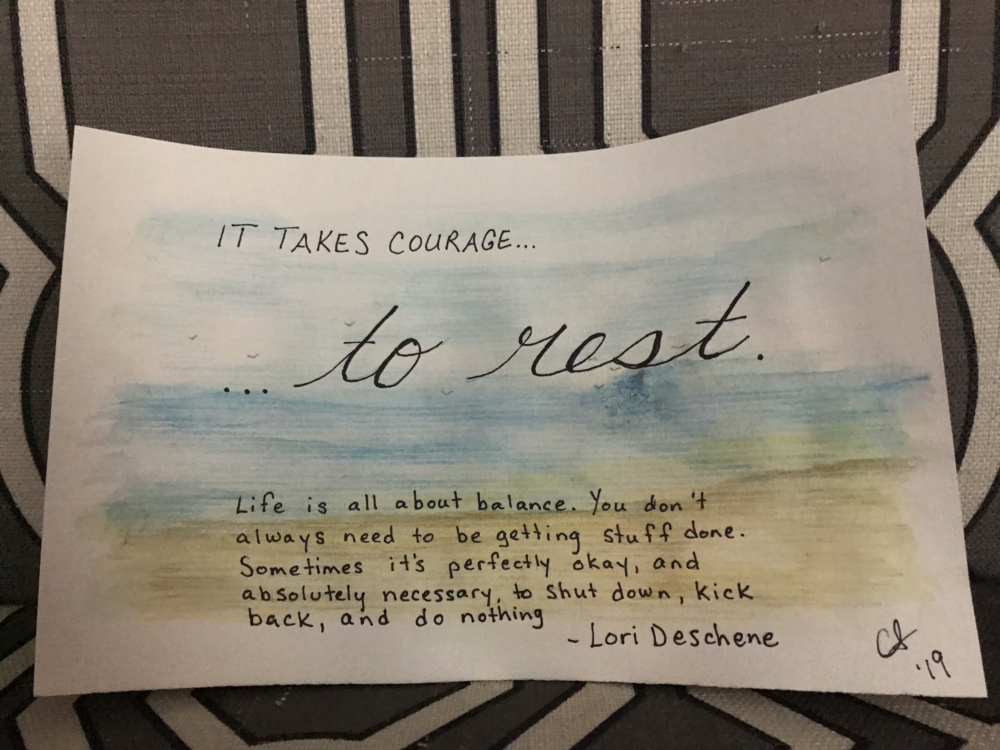 I just finished reading the book Brave, not Perfect by Reshma Saujani. In it, Reshma offers up an entire chapter about the importance of rest. I heard her speak on a podcast just before I read the book and she made a statement that has stuck with me.