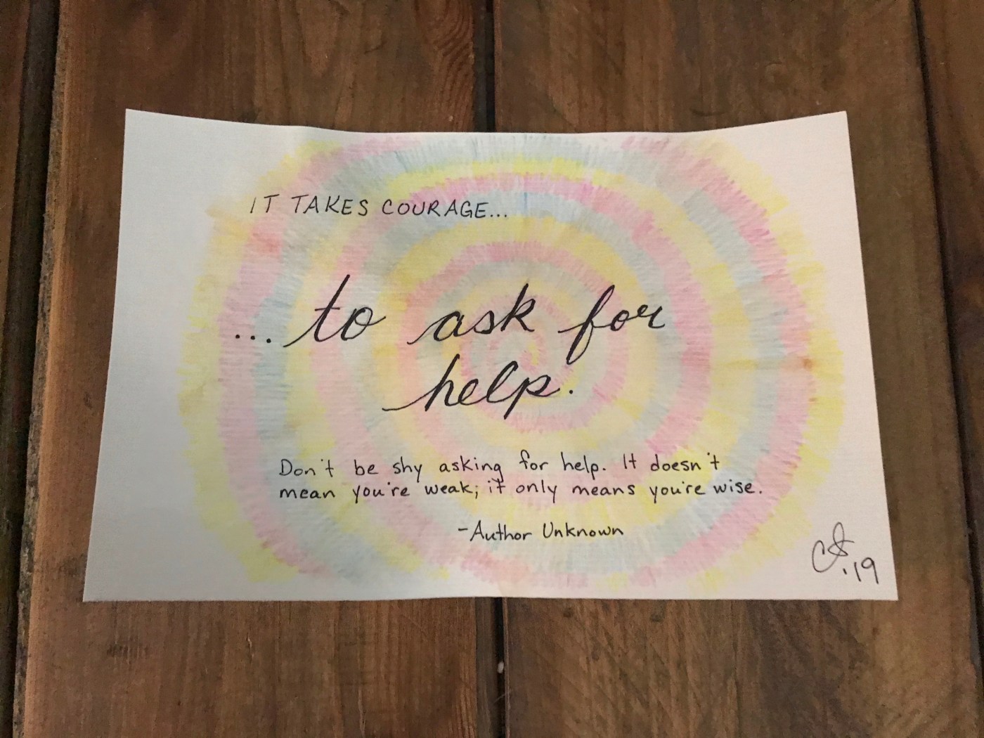 It takes courage to ask for help. Whether it is asking someone to help hand drywall, asking for help from a doctor or simply asking to share the load when it gets too much to handle alone, just ask.