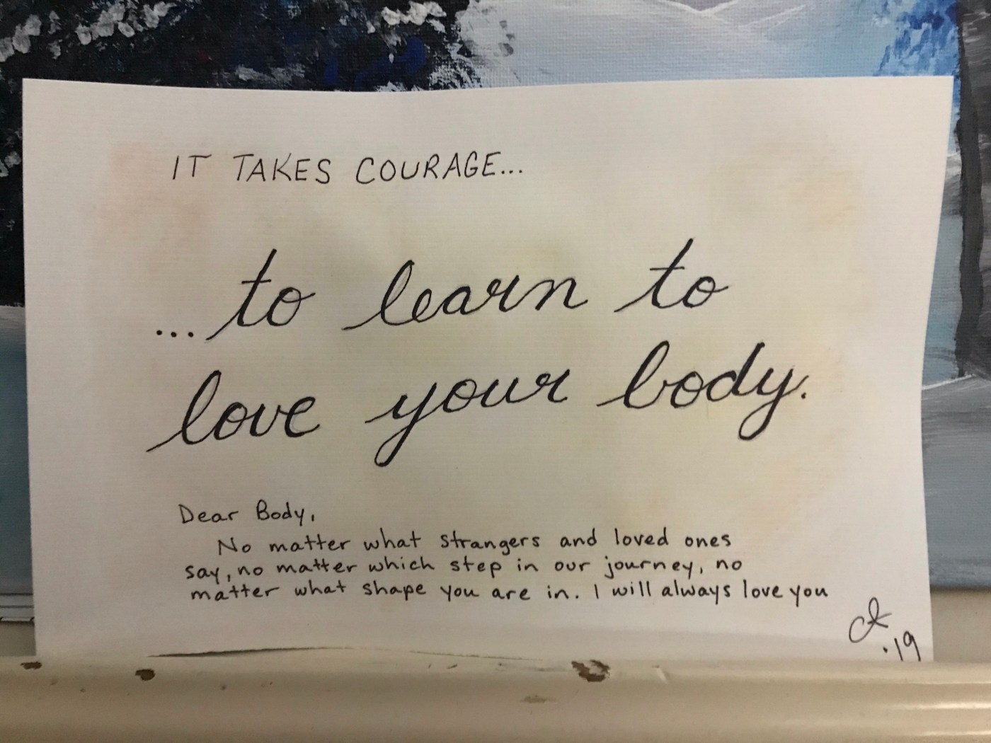 My therapist and I talked about treating Tina with kindness, and how I need to treat myself like I would anyone else who is suffering. And I did. And I am beginning to love this body of mine.