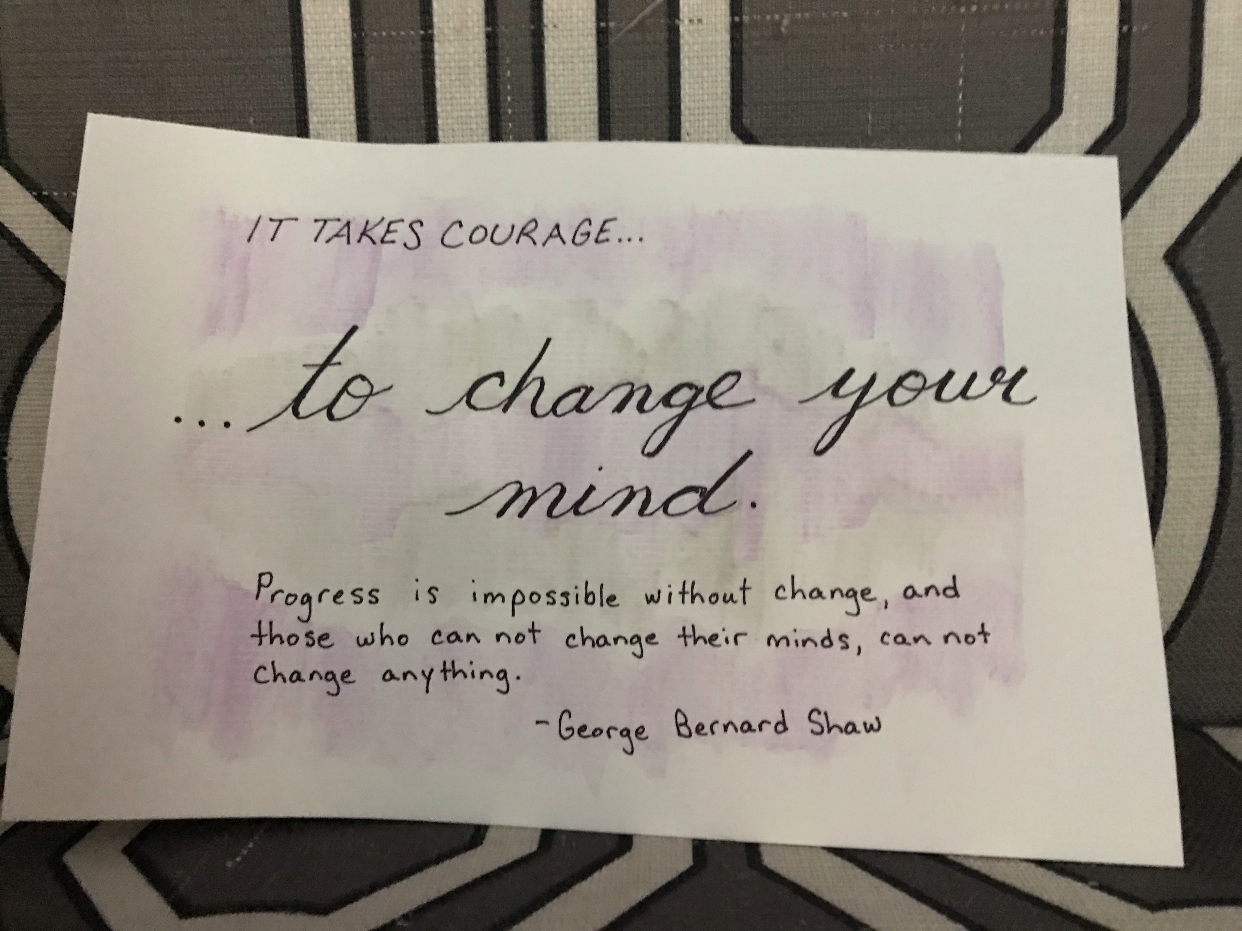 My wife has a tattoo that translates to “Life is Change” and I believe that. We can learn, change our minds and do better. And even more courageous? We can share with others how we have changed our minds about a decision, and action, a choice or our understanding about a person. When we know better, we can do better.
