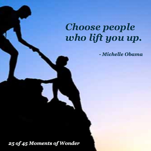 I love this quote from Michelle Obama. “Choose people who lift you up.” Those are your people. Our people are the ones who know that by lifting us, they rise themselves. Our people are the ones who know you are in the valley and they walk with you for a while when you are there. We can count on our people. We can trust our people. We know our people will choose us and will hold us to account when we go off course. We know that being with our people makes us want to be better people.