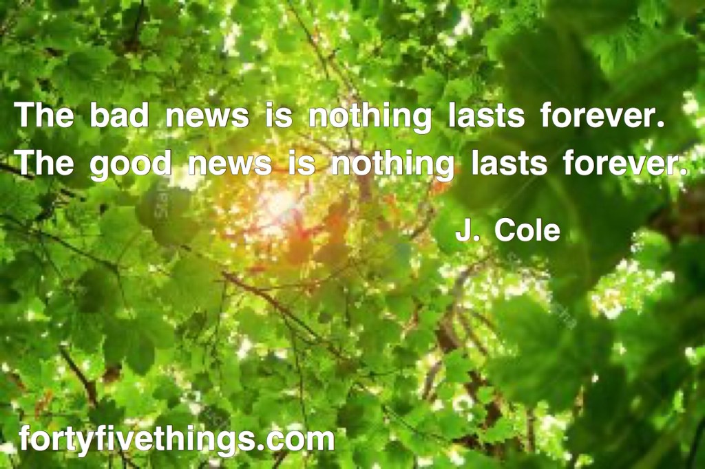 One of the words of wisdom shared with me is that nothing is permanent. That is both good news and bad news. Whatever we are going through, it will change.