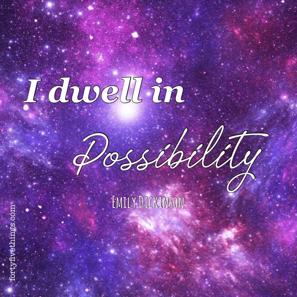 What does your Space of Infinite Possibility look like? What will you fill that space with this day or week or year? As I consider my own Space of Infinite Possibility, I ask myself: