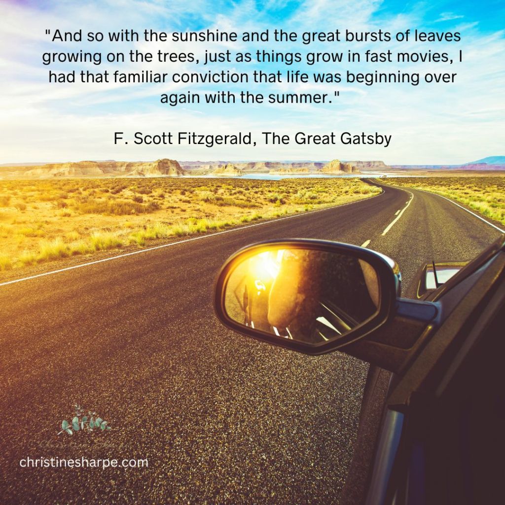 “And so with the sunshine and the great bursts of leaves growing on the trees, just as things grow in fast movies, I had that familiar conviction that life was beginning over again with the summer.” —F. Scott Fitzgerald, The Great Gatsby