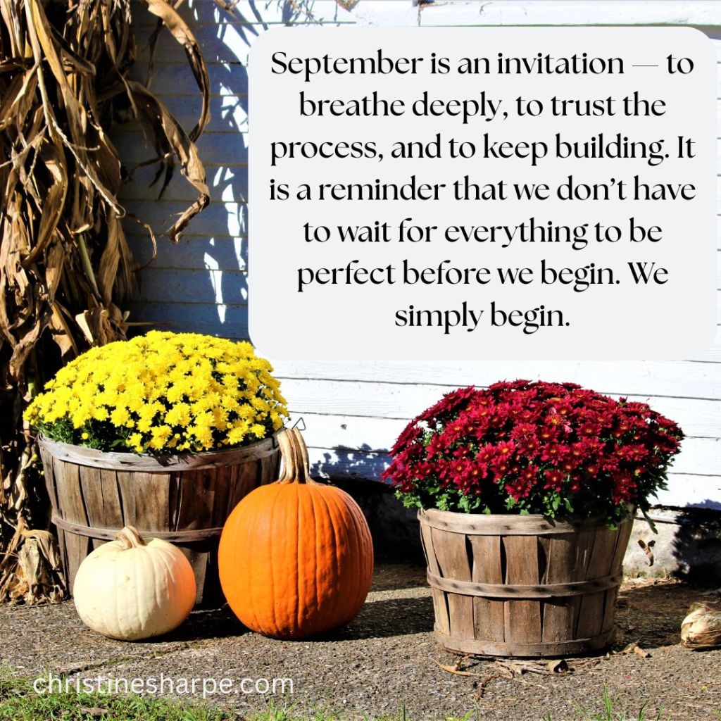 For me, September is an invitation to breathe deeply, to trust the process, and to keep building. It is a reminder that we don’t have to wait for everything to be perfect before we begin. We simply must begin.