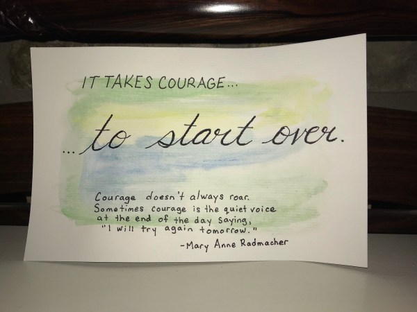 It takes courage to start over. But doesn’t that sound a lot like giving up? It can feel that way. When I am invested in something, whether it is at work or in my relationship, and things are not going the way I planned, I want to fix it, to push, to fight to make... Continue Reading →
